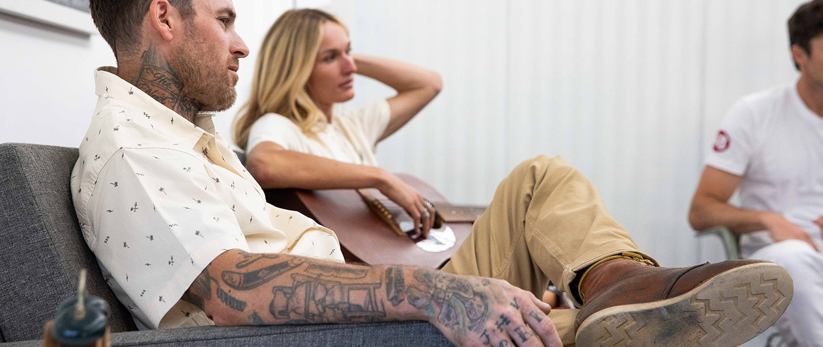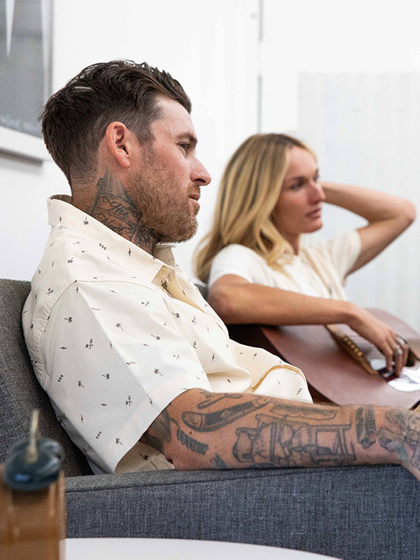 The Retrospect Button-Up blends coastal style with a modern fit, featuring a full button closure, a left chest pocket, and a woven label detail.