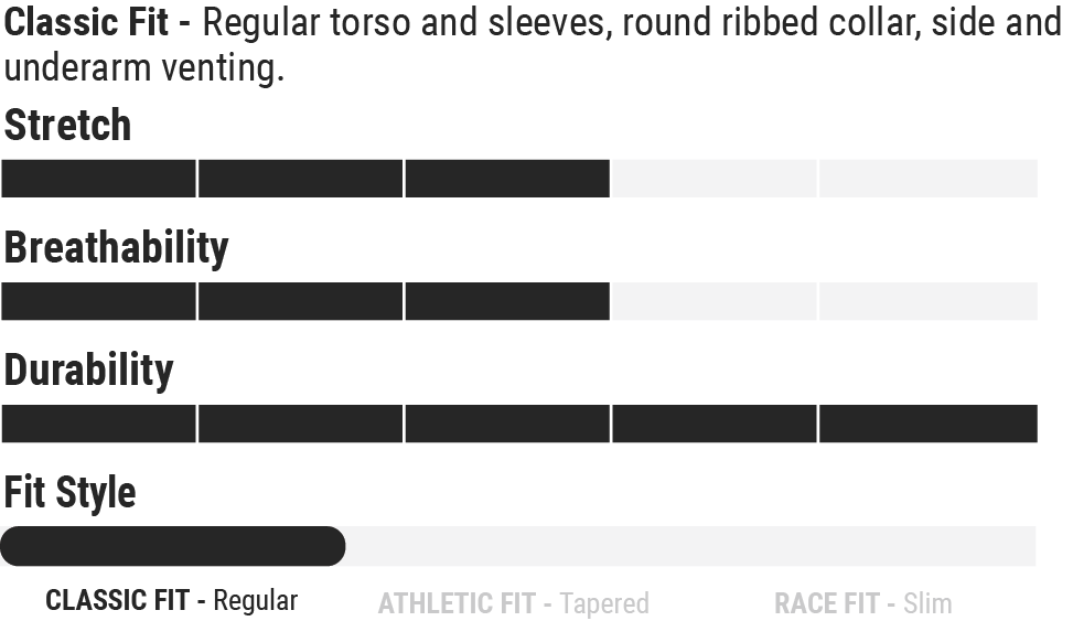 - Classic fit, regular torso and sleeves with a round ribbed collar