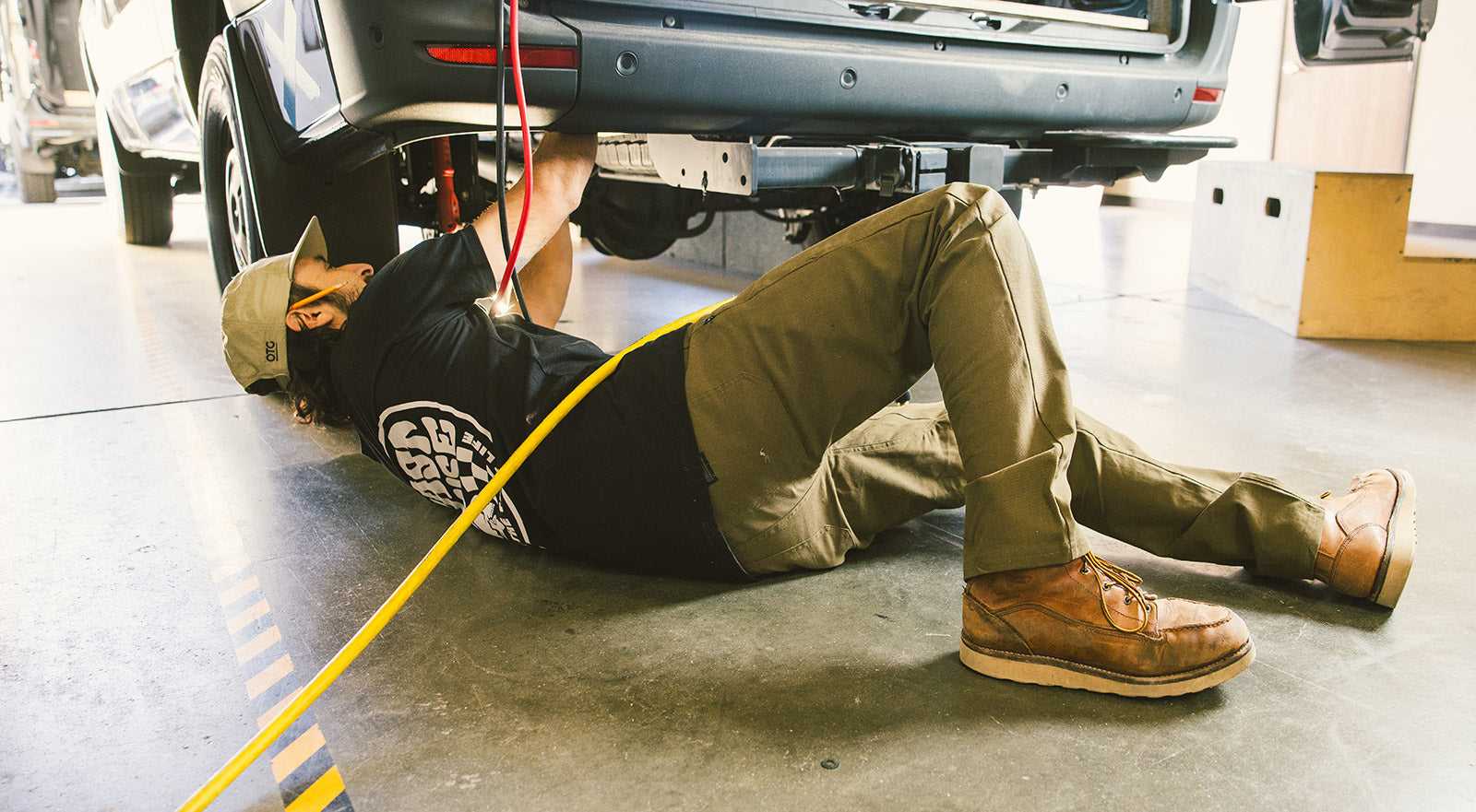 The Service Pant is built to handle whatever the day throws at you. Wrenching in the garage, hanging at the track, or grabbing a cold one after. Made from durable cotton canvas with a relaxed straight leg fit, it’s got all the right details. Hidden zip pocket, reinforced knife patch, key loop, and custom metal trims. Easy style, all day comfort, and always down to put in work.